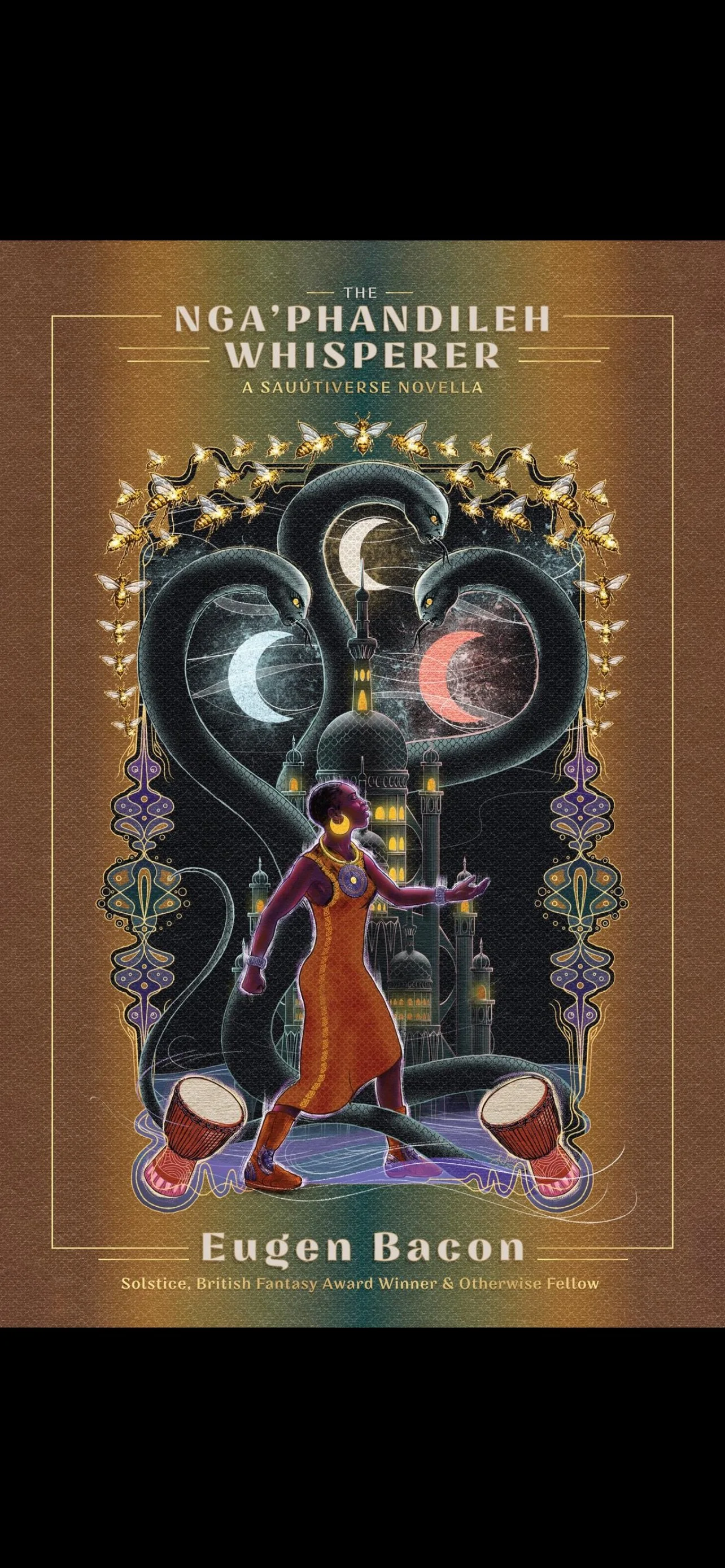 If readers simply go along with the flow of the novella’s narrative, they will find that meanings manifest. Like poetry, one should not try to “get” THE NGA’PHANDILER WHISPERER “right”. Glean an idea of Chant’L, of her mother and father, of the Guardians, of the Nga’phandiler, of the world they all exist in. Seeing the novella’s narrative universe as a foreign locale which cannot be immediately grasped, but can be emotionally experienced, is part of the brilliance of Eugen Bacon’s writing. At only about a 160 pages, it is a quick read, an adventure that takes readers along the tribulations of the young heroine who must deal with her own expectations, her failings, her love gained and lost, and a discovery of herself no matter how others try to define her.